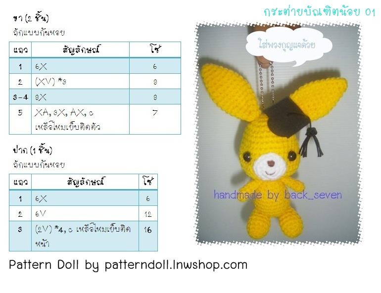 แพทเทิร์นตุ๊กตาถักโครเชต์ฟรี กระต่ายบัณฑิตน้อย