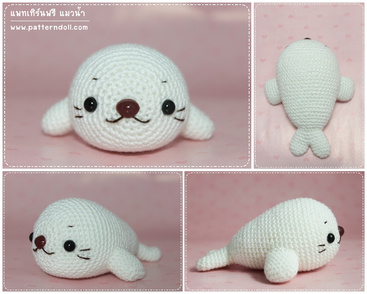 แพทเทิร์นตุ๊กตาถักโครเชต์ฟรี แมวน้ำ